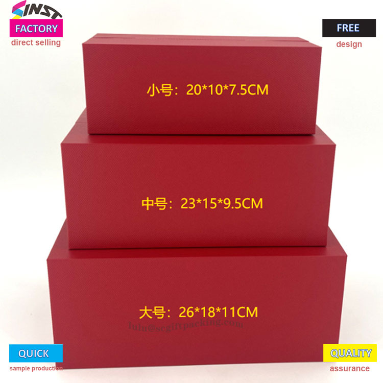 اس ریڈ وائن گفٹ باکس کا افتتاحی ڈیزائن بہت صاف ہے ، جس میں ہموار کناروں اور افتتاحی وقت میں کوئی فرق نہیں ہے ، جو کریک کرنا آسان نہیں ہے اور اسے مختلف شیلیوں کے لئے اپنی مرضی کے مطابق بنایا جاسکتا ہے۔ پرنٹنگ بھی بہت واضح ہے۔ سینسٹ پرنٹنگ اور پیکیجنگ کمپنی جدید آلات کو اپناتی ہے اور اس میں رنگین مینجمنٹ سسٹم ہے ، جس میں بہترین بصری اثرات کے ساتھ روشن رنگ تیار ہوتے ہیں۔ یقینا ، گفٹ باکس کی تفصیلات بھی انتہائی کامل ہیں ، سخت کونے اور ہموار کناروں کے ساتھ ، صارفین کو انتہائی بہترین معیار کے ساتھ پیش کرتے ہیں۔ گفٹ باکس کے نچلے حصے میں بہت مضبوط ہے ، جس میں اچھی بوجھ اٹھانے کی کارکردگی ، سخت سلائی ، سوچ سمجھ کر ڈیزائن اور جامع غور و فکر ہے۔