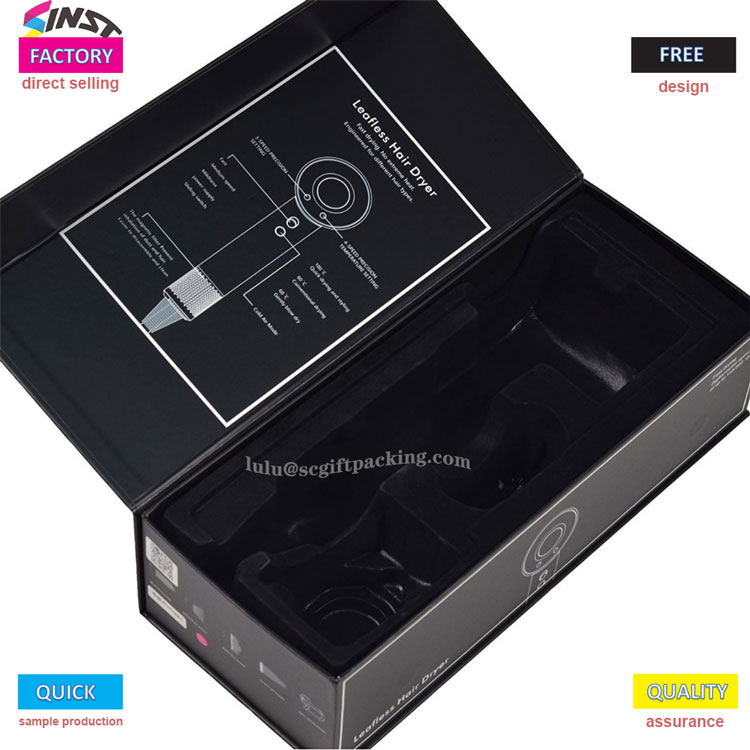 اس سیاہ فلپ کور ہیئر ڈرائر گفٹ باکس میں ایک سادہ اور خوبصورت ڈیزائن شامل ہے۔ باکس کور کے اندرونی حصے کو برانڈ لوگو اور ہوا کی مختلف رفتار اور درجہ حرارت کے کنٹرول کے ساتھ چھاپا جاتا ہے۔ گفٹ باکس کی کاریگری بہت بناوٹ والی ہے ، جس کی وجہ سے یہ ایک خصوصی اسٹوریج اور تحفہ دینے کی تقریب کے لئے انتخاب ہے۔