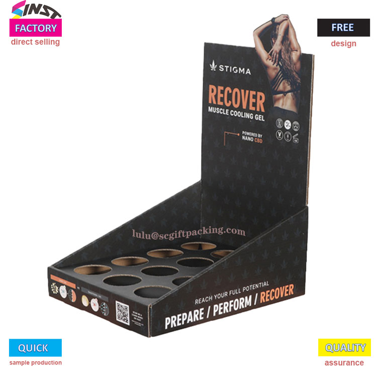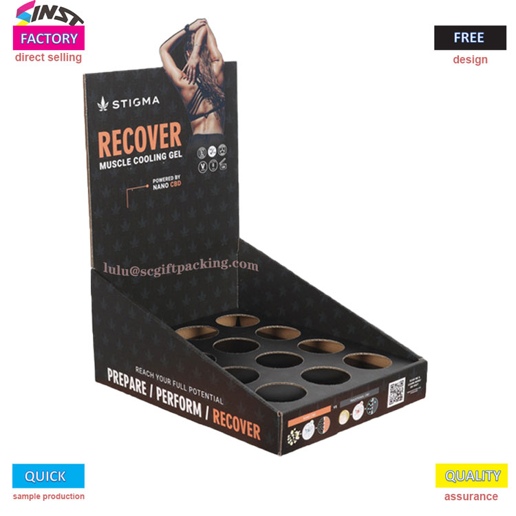 خالی اسپیس پیپر کے ساتھ اس ہیلتھ پروڈکٹ ڈسپلے باکس میں سیاہ فام پس منظر کی گرم اسٹیمپنگ اور ایک طاقتور بصری اثر کے ساتھ ایک کم سے کم جمالیاتی جمالیاتی خصوصیات شامل ہیں ، جس میں ورزش کے بعد پٹھوں میں نرمی کے بنیادی فروخت نقطہ کو اجاگر کیا گیا ہے۔ ڈسپلے ریک ایک ملٹی گرڈ سرکلر ہول اسٹوریج ڈیزائن کو اپناتا ہے ، جو نہ صرف ڈسپلے کو مستحکم کرتا ہے بلکہ مصنوعات کی ساخت کو بھی جاری کرتا ہے ،